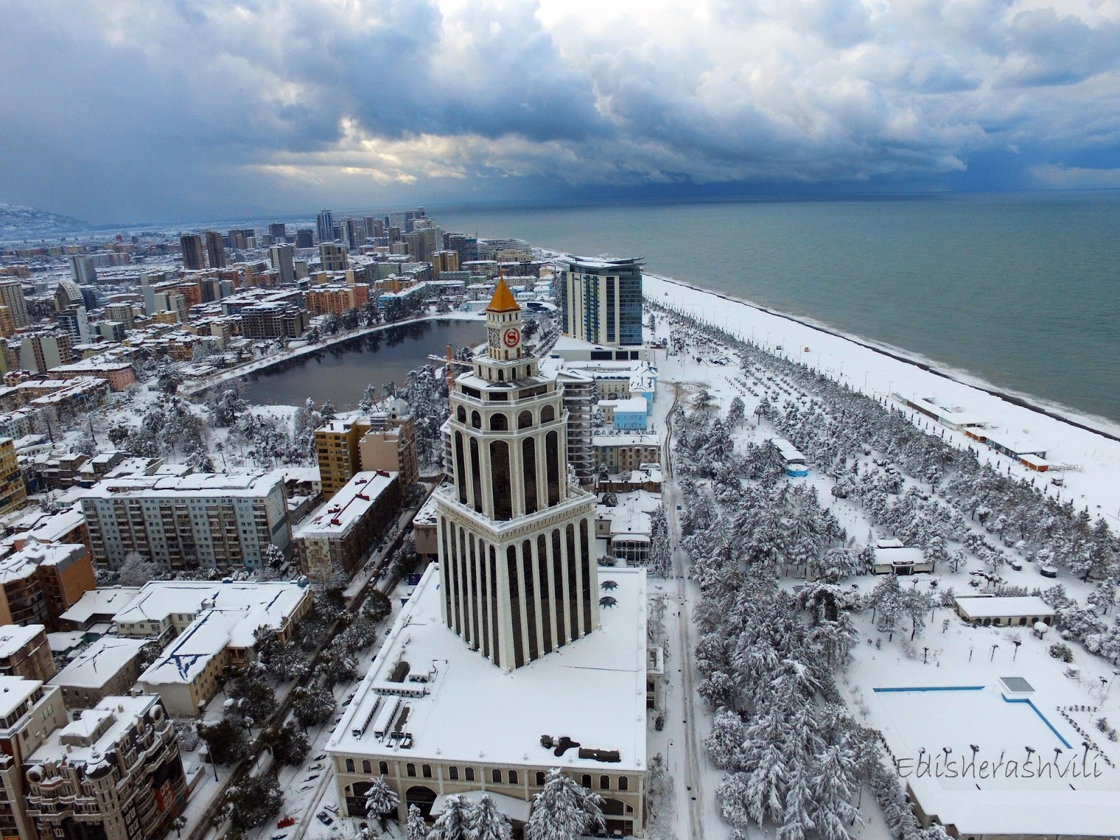 Фотографии зимних пейзажей в Батуми: пальмы и морские виды