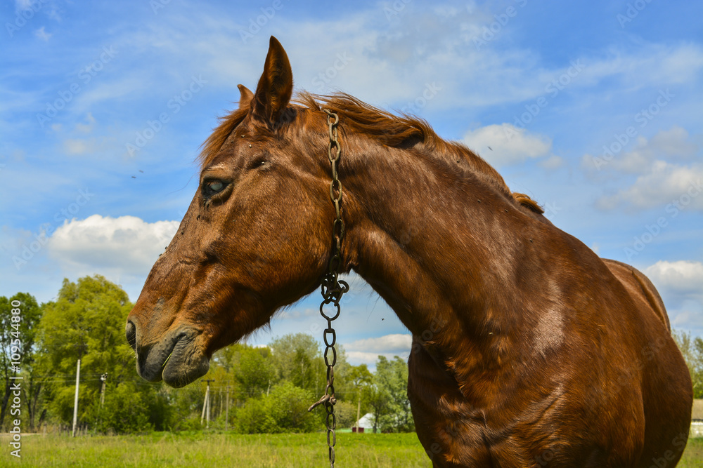 Фотографии лошадей, жующих траву в естественной среде
