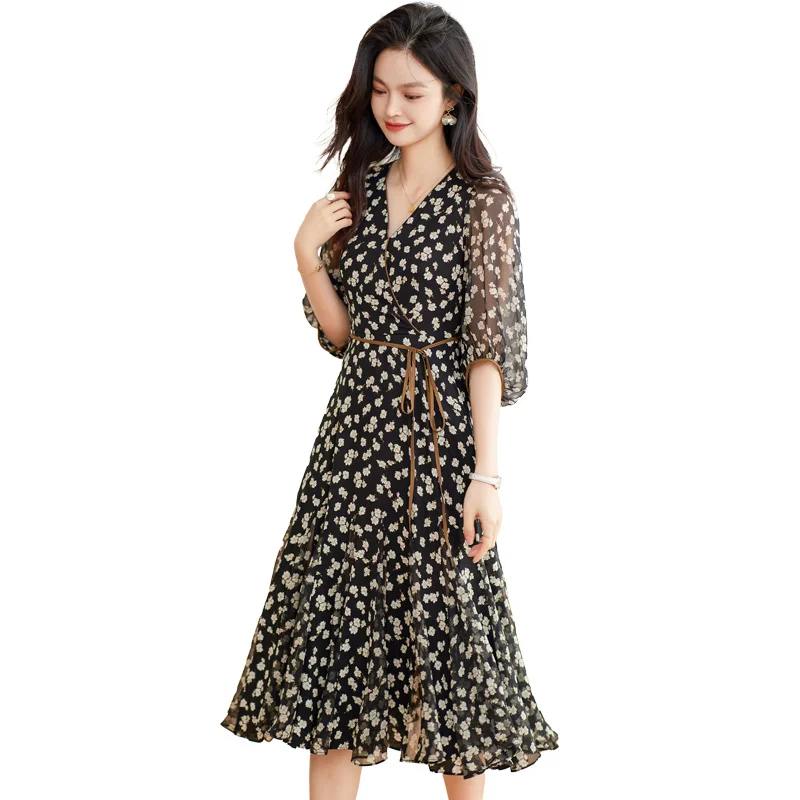 Шифоновое платье с узором коричневые огурцы: стиль и мода